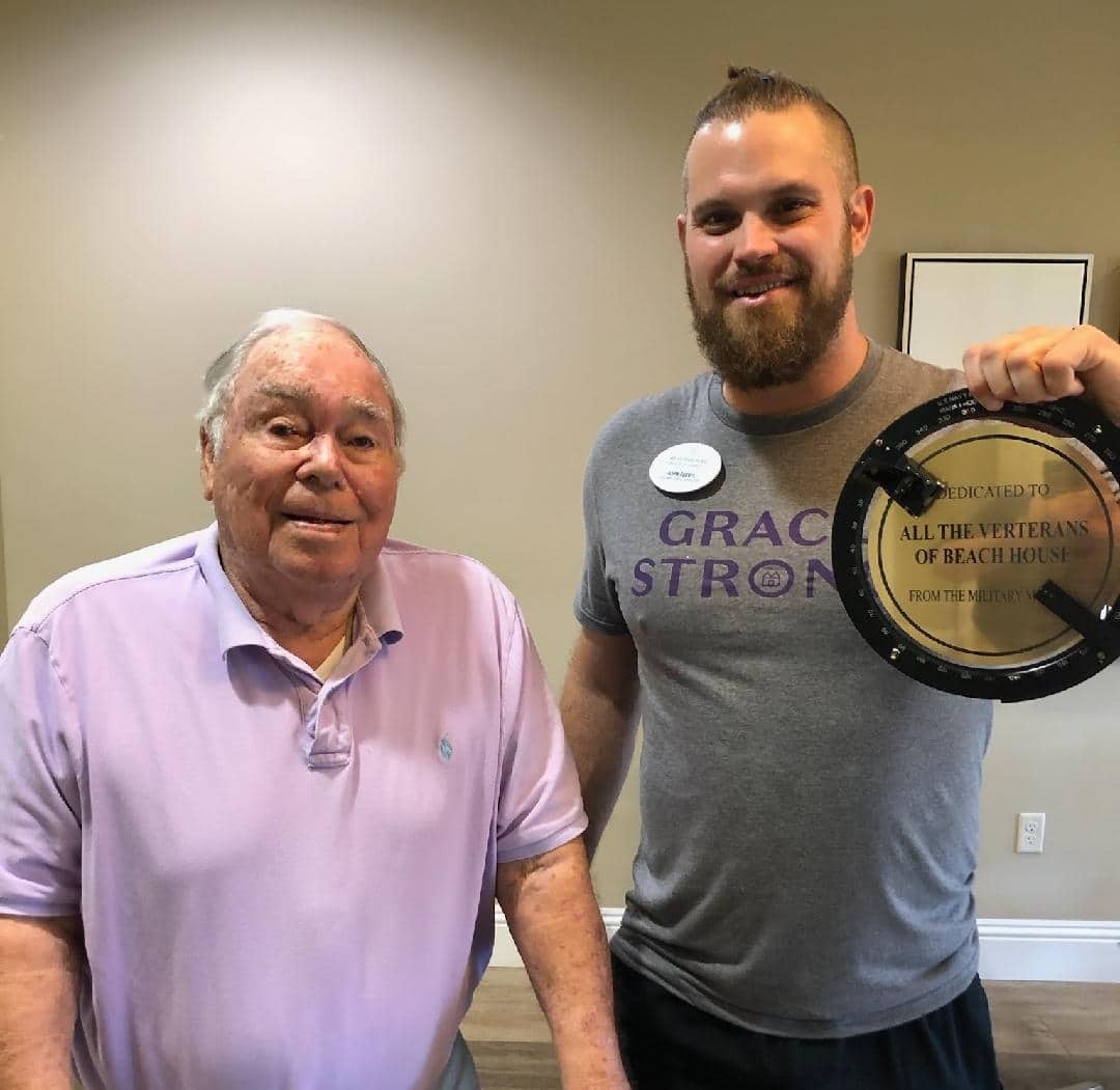 Bearing Circle presentation to Navy veteran Paul and the Activity Director of the Beach House, John Ferris
