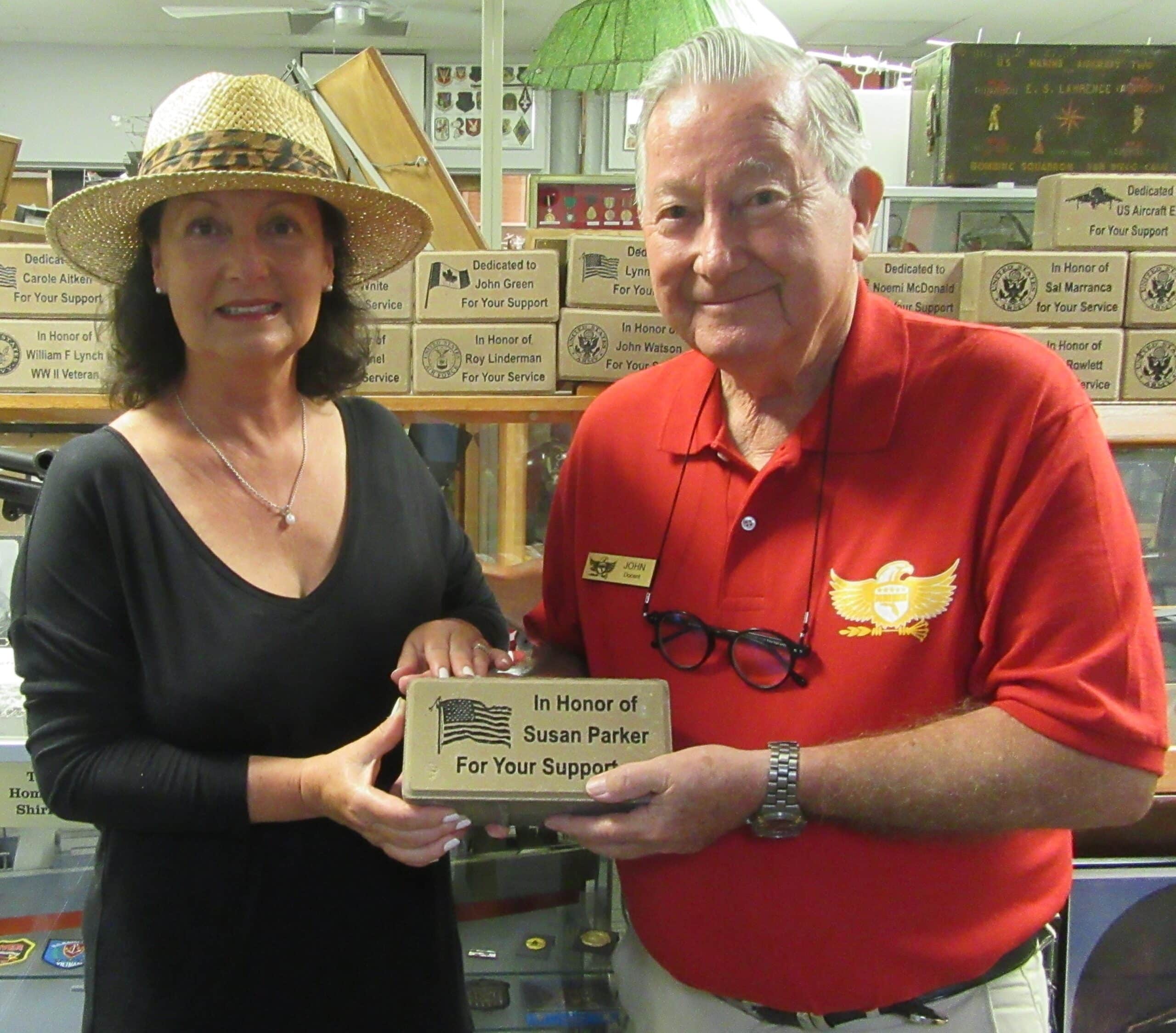 John Green presenting Memorial Paver to supporter, Susan Paker.