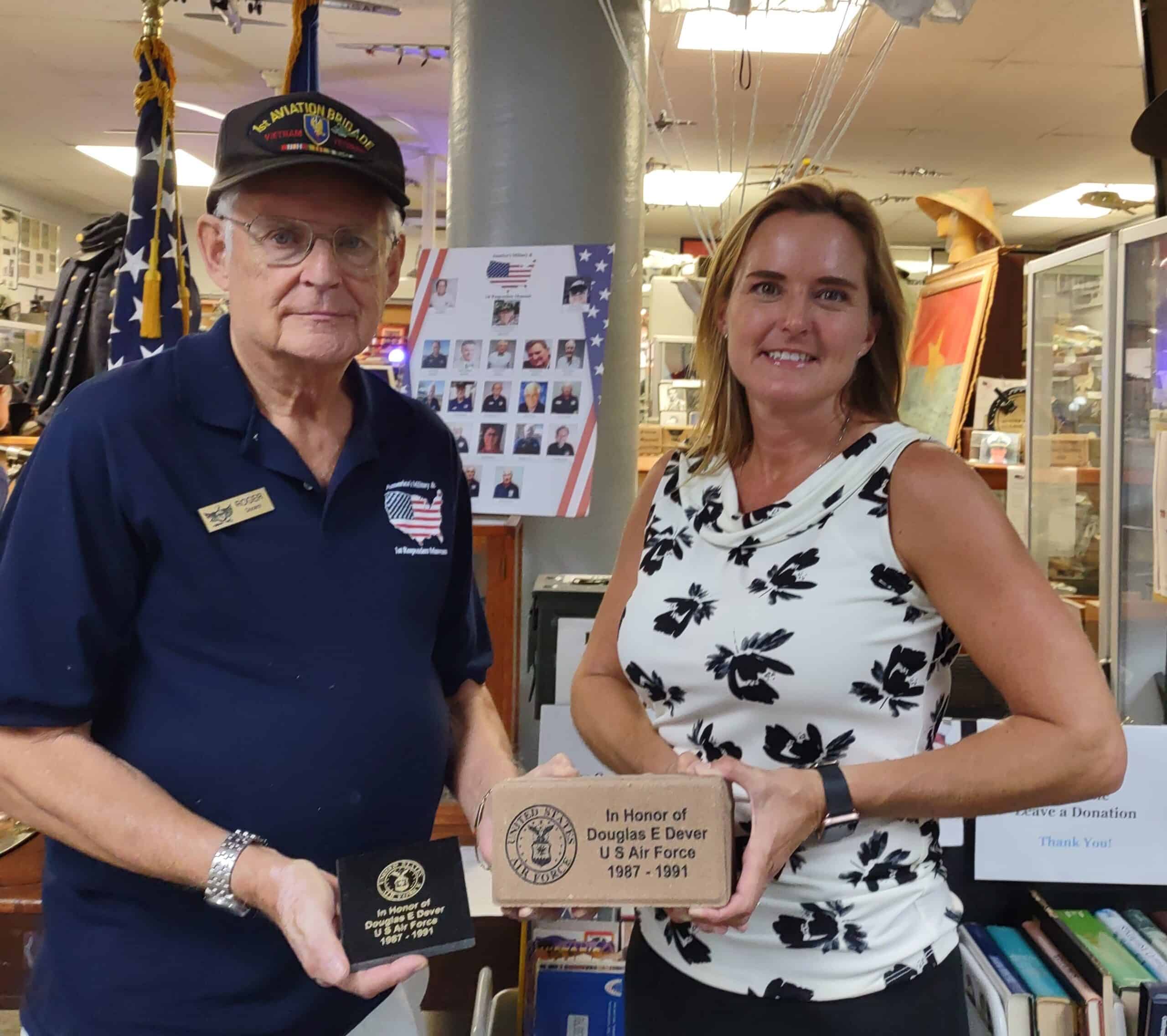Roger Crick, Docent presenting paver for Doug Dever to Erin Dever