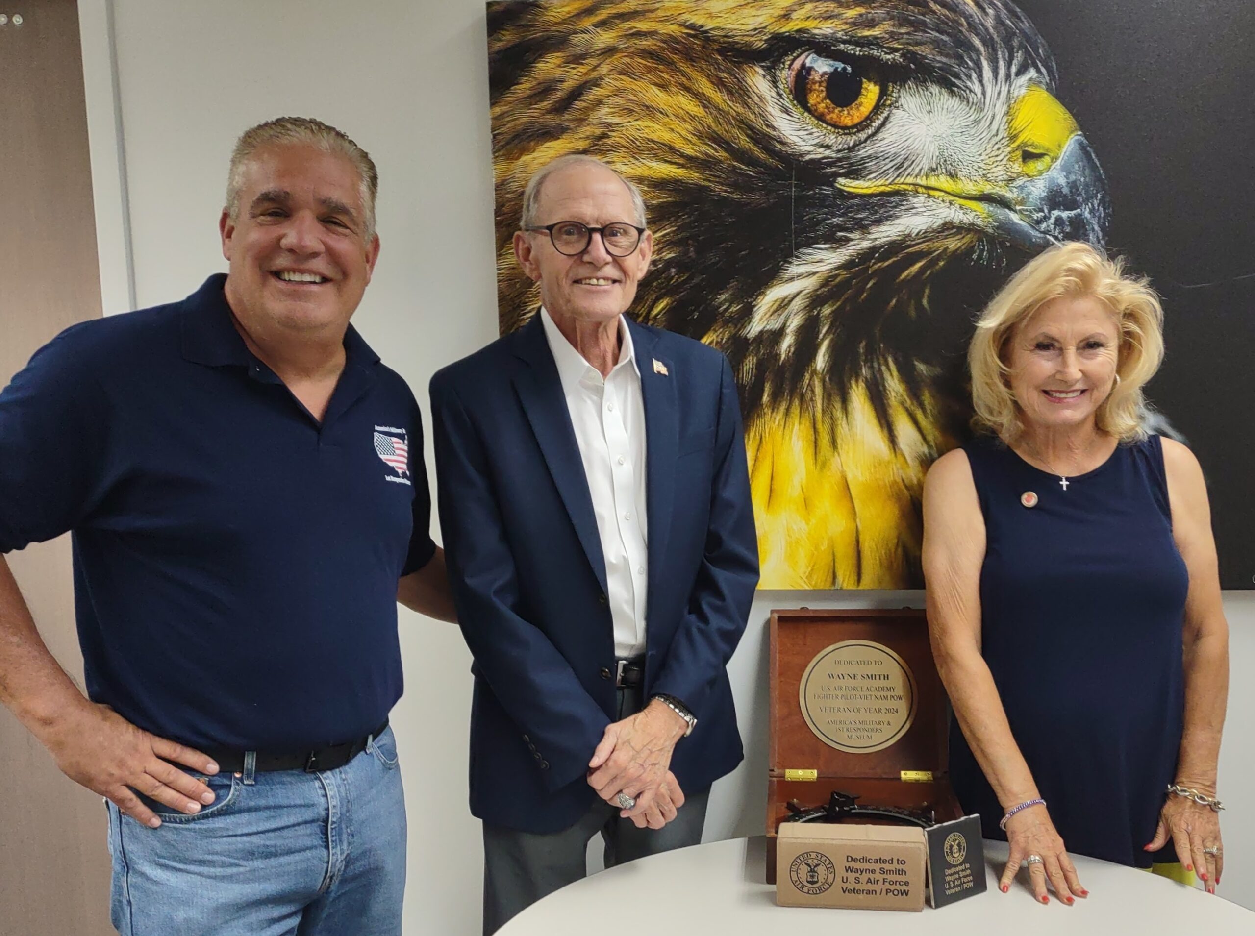 Veteran of the Year 2024 Wayne Smith (center) with his wife Lois Bolin and Board of Director Tim Guerrette